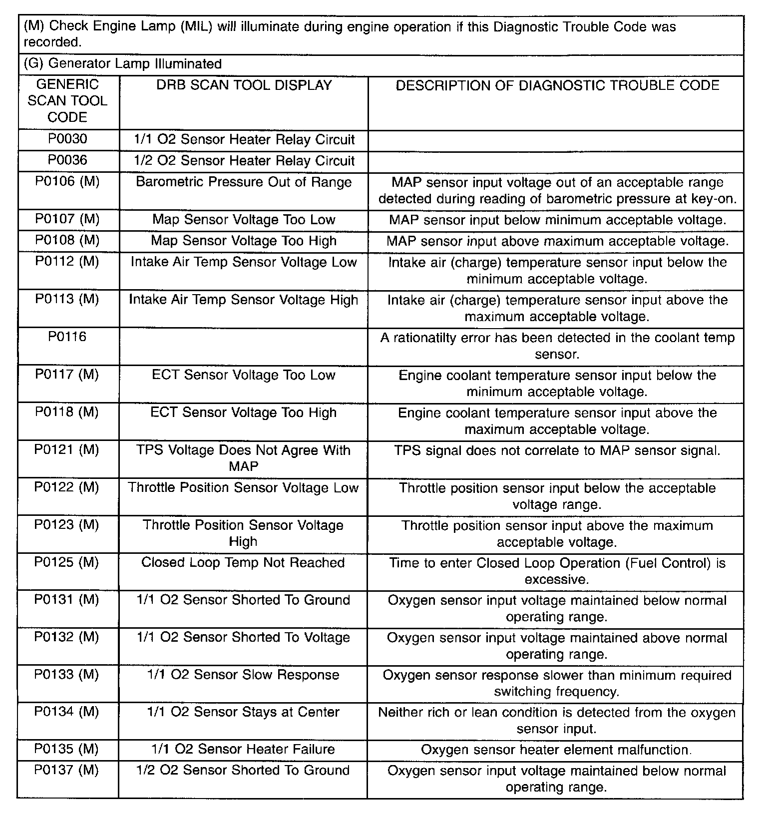 Diagnostic Trouble Code Descriptions (P0030 To P0137 (M)):