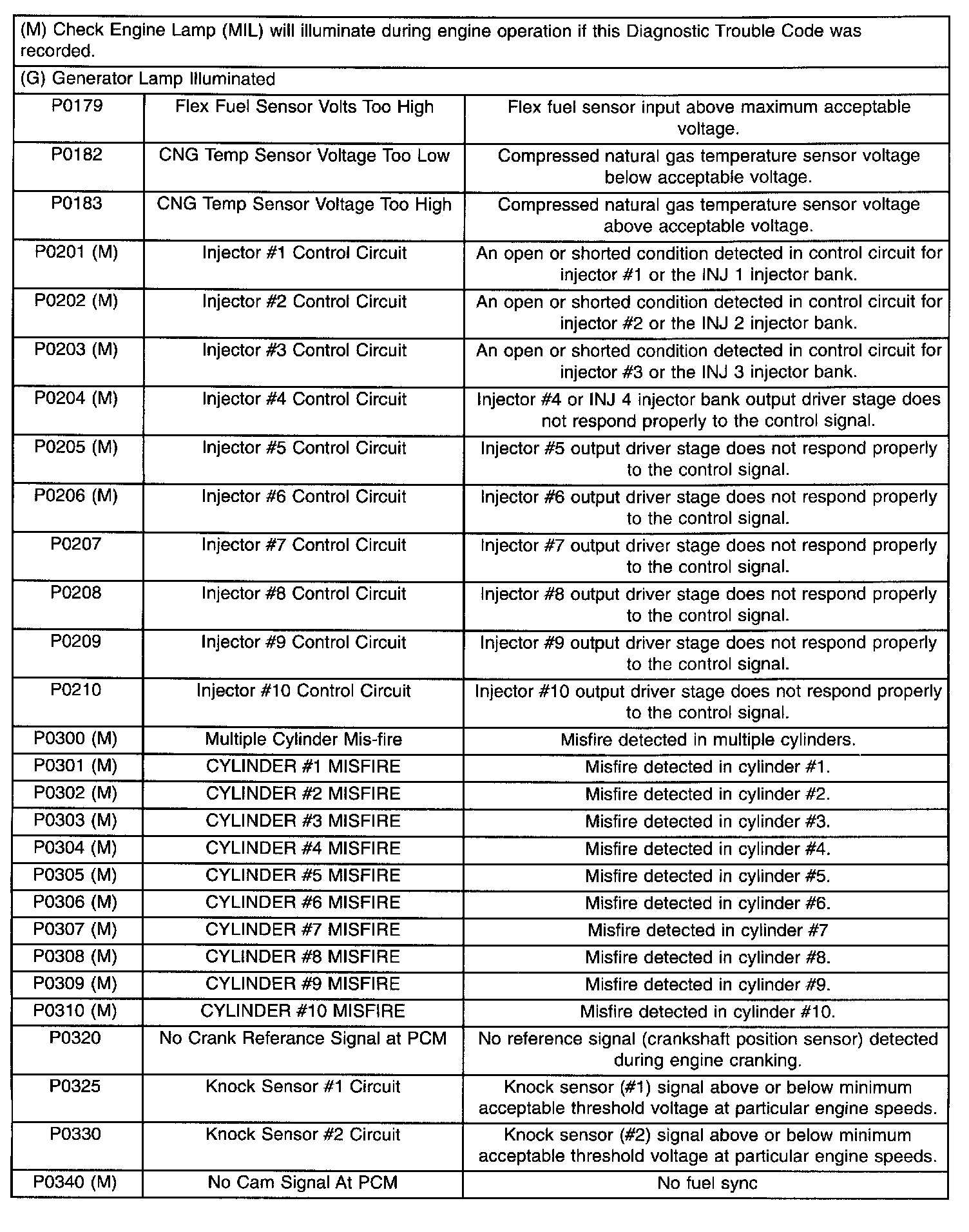 Diagnostic Trouble Code Descriptions (P0179 To P0340 (M)):