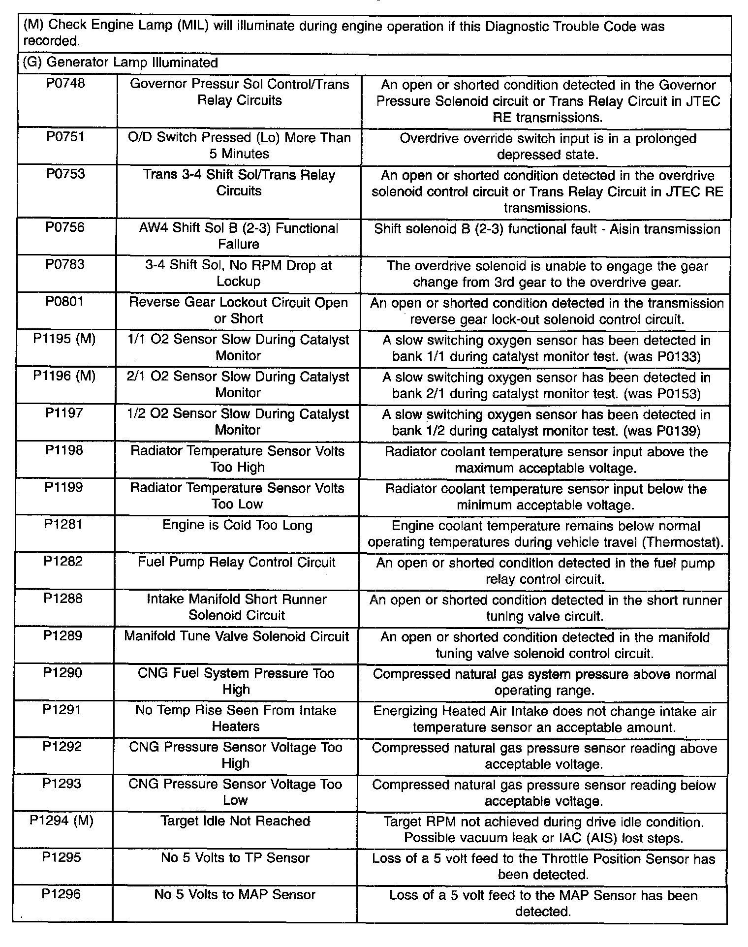 Diagnostic Trouble Code Descriptions (P0748 To P1296):