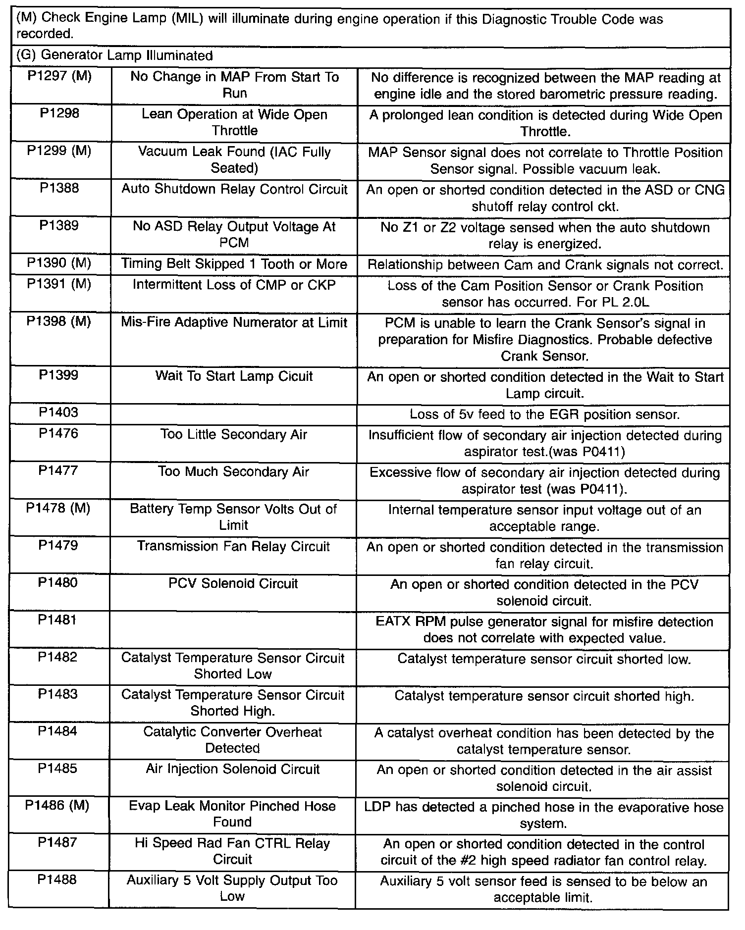 Diagnostic Trouble Code Descriptions (P1297 (M) To P1488):