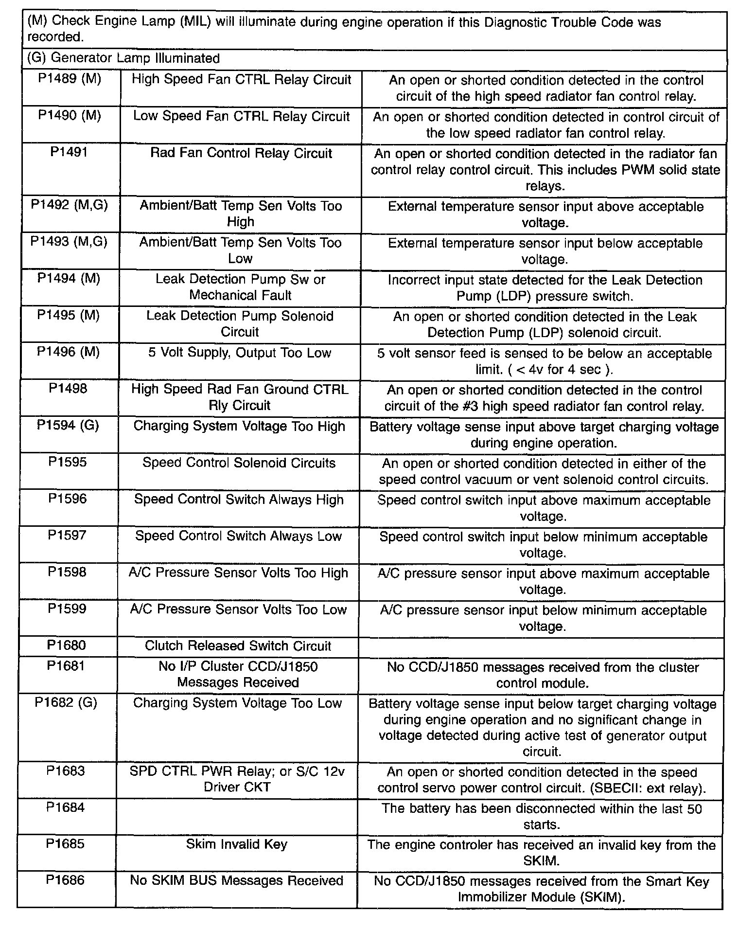 Diagnostic Trouble Code Descriptions (P1489 (M) To P1686):