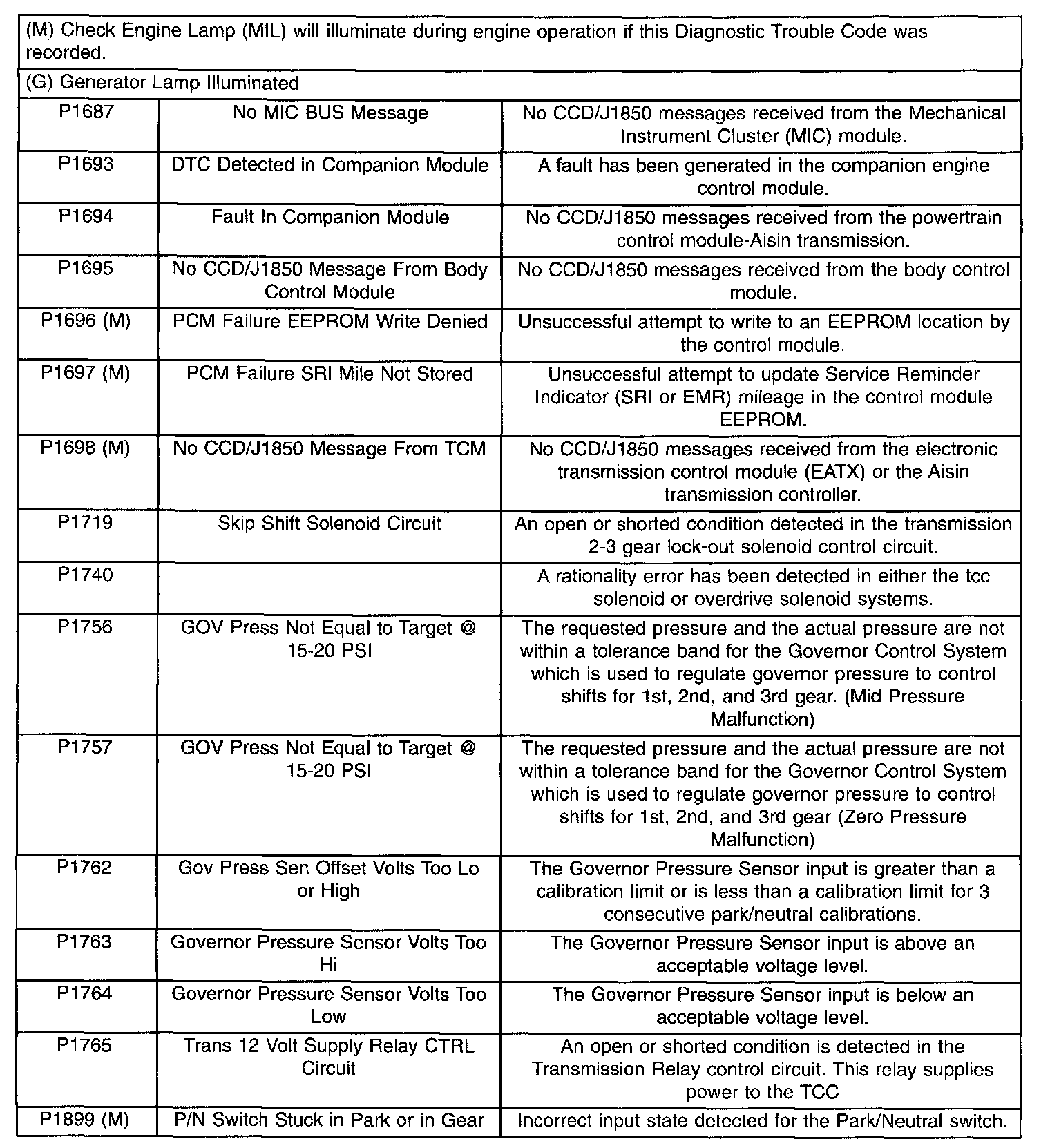 Diagnostic Trouble Code Descriptions (P1687 To P1899 (M)):