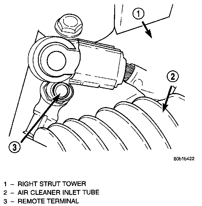 2. Open hood, disconnect and isolate the negative battery cable remote terminal from the remote battery post.