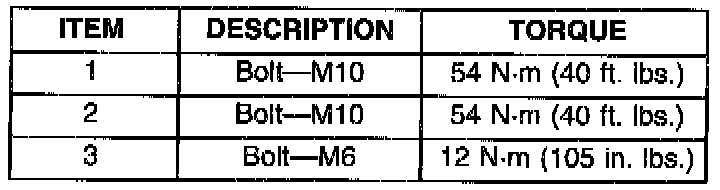 4. Install timing cover and gasket. Tighten M10 cover bolts to 54 Nm (40 ft. lbs.) and M6 bolts to 12 Nm (105 inch lbs.).