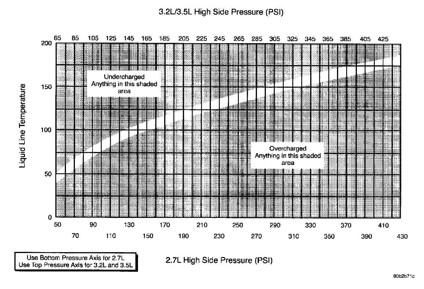 7. The scan tool procedure does not require the Charge Determination Graph. The correct liquid line temperature range is calculated by the scan tool automatically.
