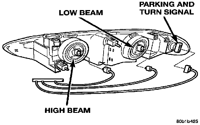 4. Rotate retaining ring (High beam or Low beam) and pull lamp socket from headlamp housing.