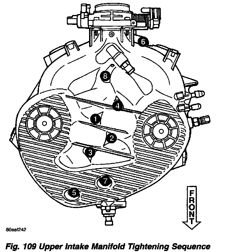 Tighten manifold attaching bolts in sequence shown. Torque to 12 Nm (105 in. lbs.).