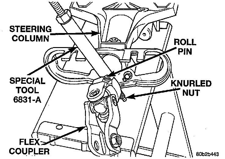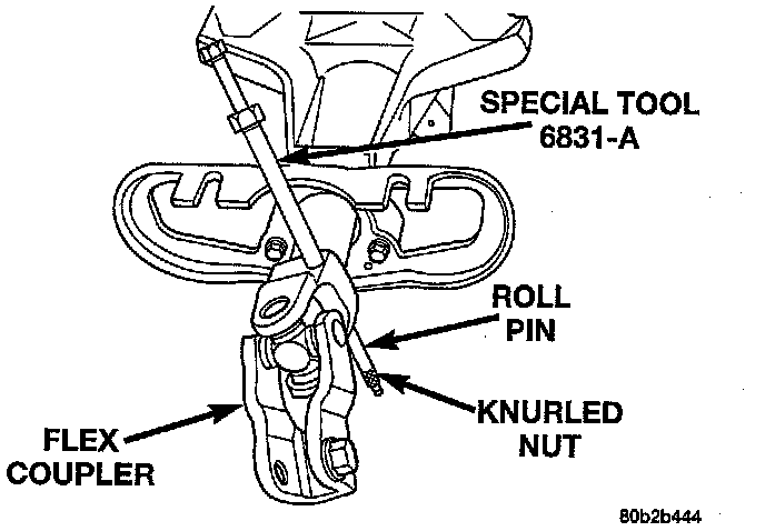 2. Install Puller, Special Tool 6831-A, or equivalent through center of roll pin in flex coupler and install knurled nut