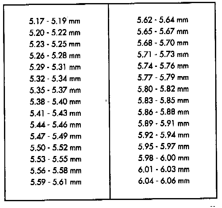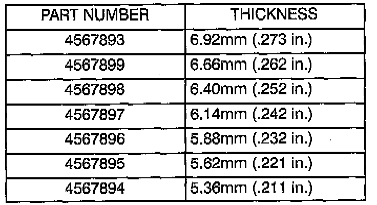 Output Bearing Shim Chart: