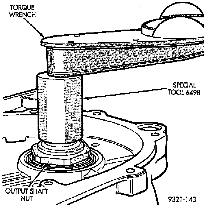 6. Using special tools 6497 and 6498, or equivalents, install new output shaft nut. Do not reuse old output shaft nut. Tighten new output shaft nut to 271 Nm (200 ft. lbs.).