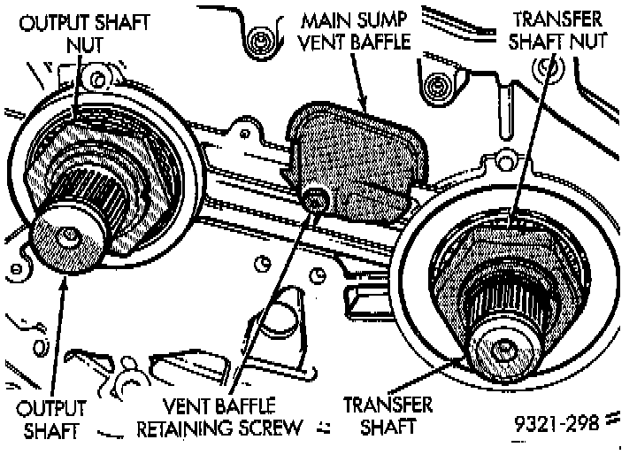 CAUTION: Do not reuse old transfer shaft nut or output shaft nut because the removed stake weakens the nut flange.