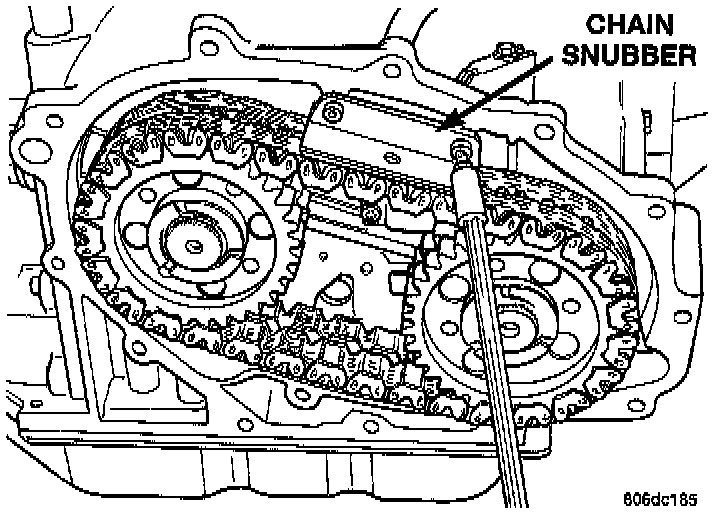 CAUTION: Be sure to reinstall the chain snubber and chain oiler when reassembling.