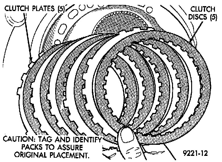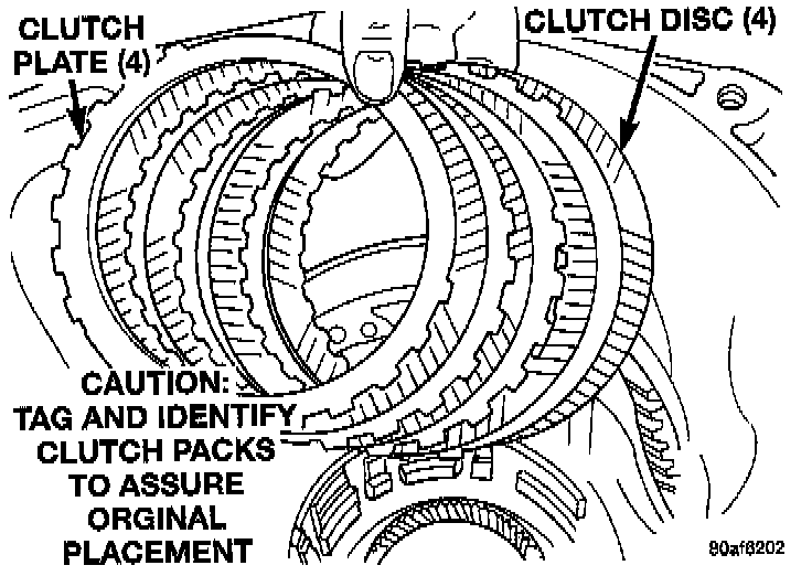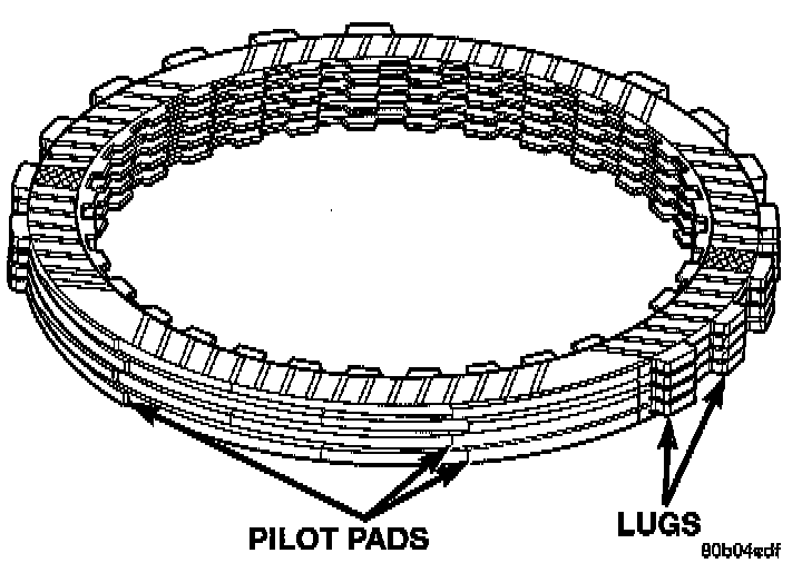 NOTE: When installing the 2-4 clutch plates and discs, the orientation should be alternated so the pilot pads of adjacent plates do not align, refer image.