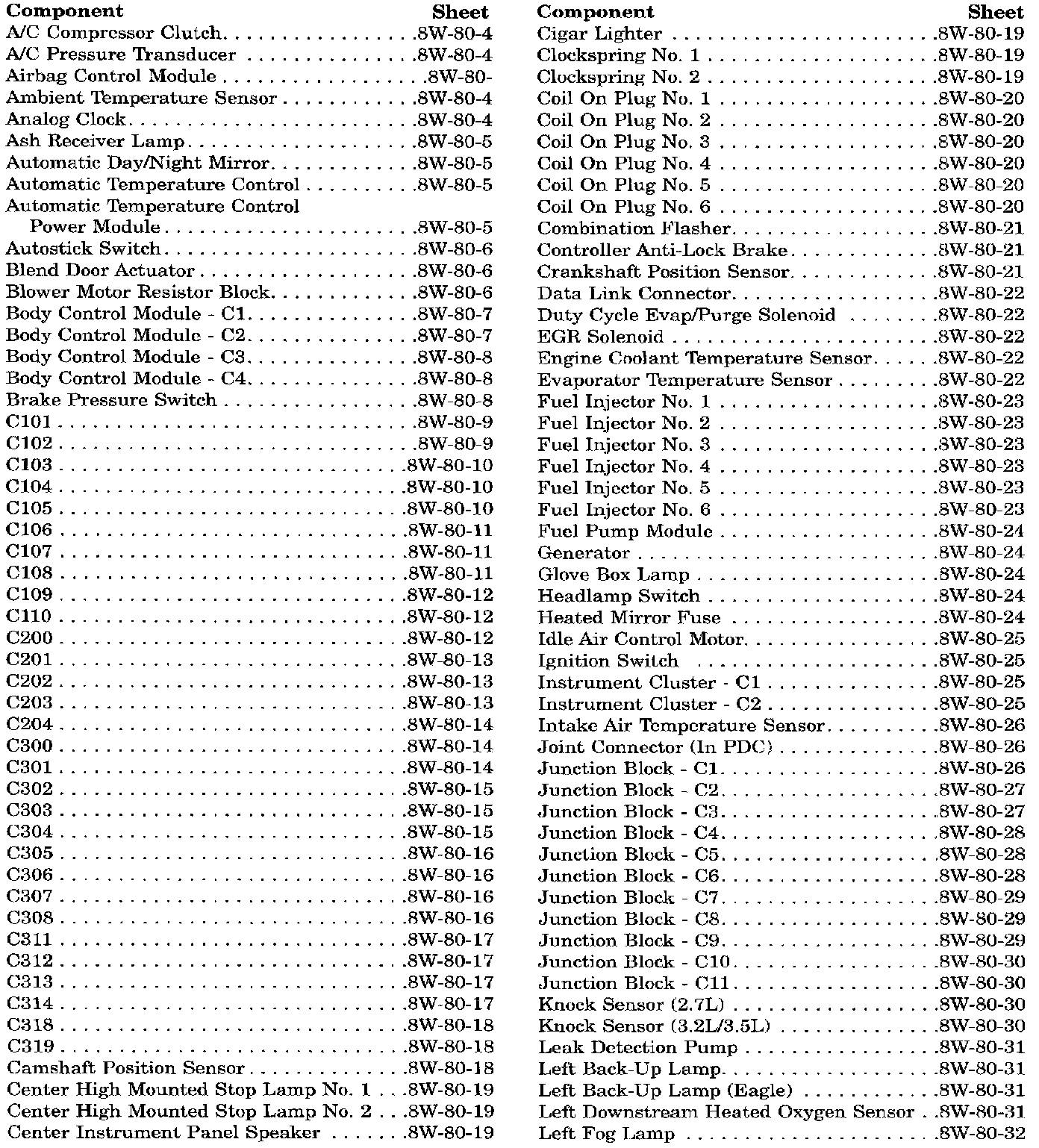 Sheet 8W-80-1 Group Index
