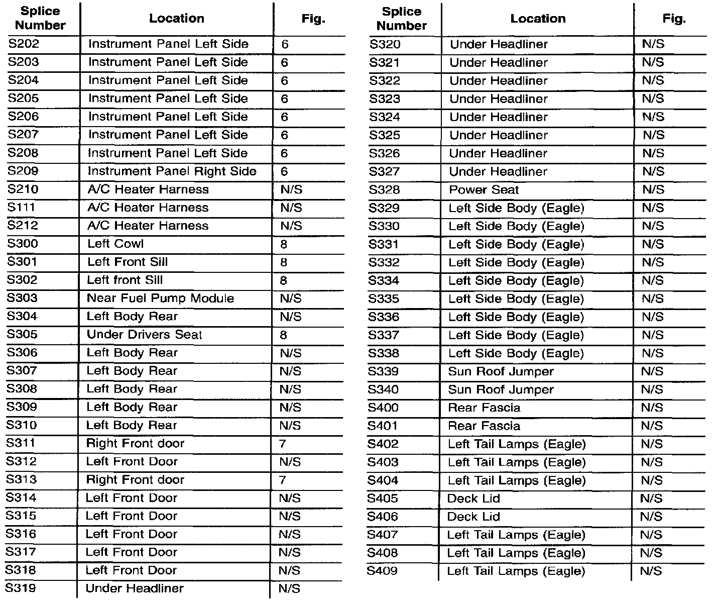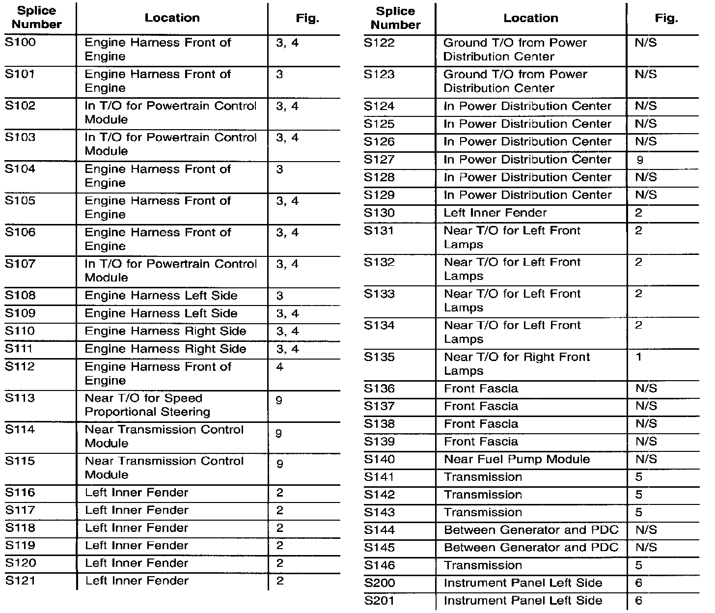 Splice Locations S100 To S201: