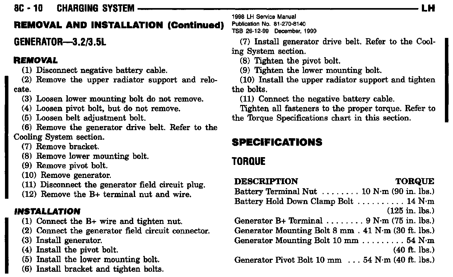 1998 Concorde, Intrepid, LHS, 300 M Service Manual - Publication Number 81-270-8140