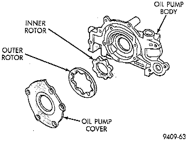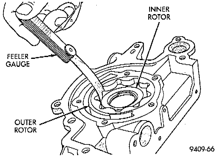 6. Install inner rotor into pump housing. If clearance between inner and outer rotors is 0.203 mm (0.008 inch) or more, replace both rotors.