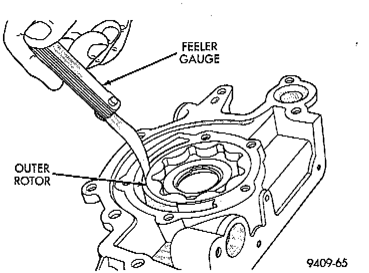 5. Slide outer rotor into pump housing, press to one side with fingers and measure clearance between rotor and housing. If measurement is 0.39 mm (0.015 inch) or more, replace housing only if outer rotor is in specification.