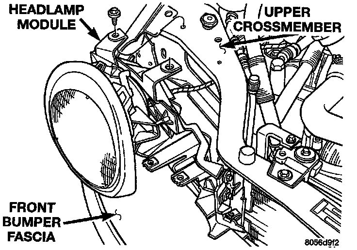 2. From behind bumper fascia, remove bolt holding outboard end of module to fender and closure panel.