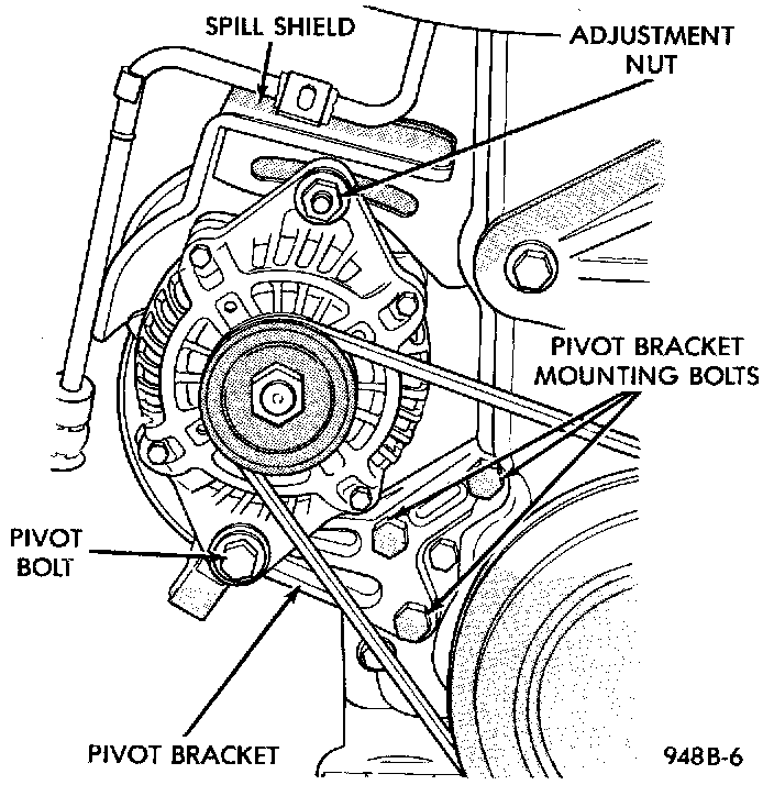 8. Remove the generator drive belt. The generator spill shield does not need to be removed.