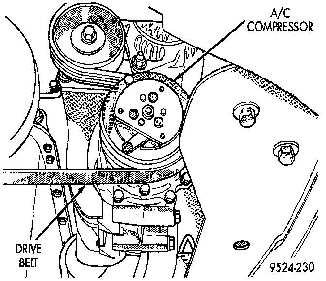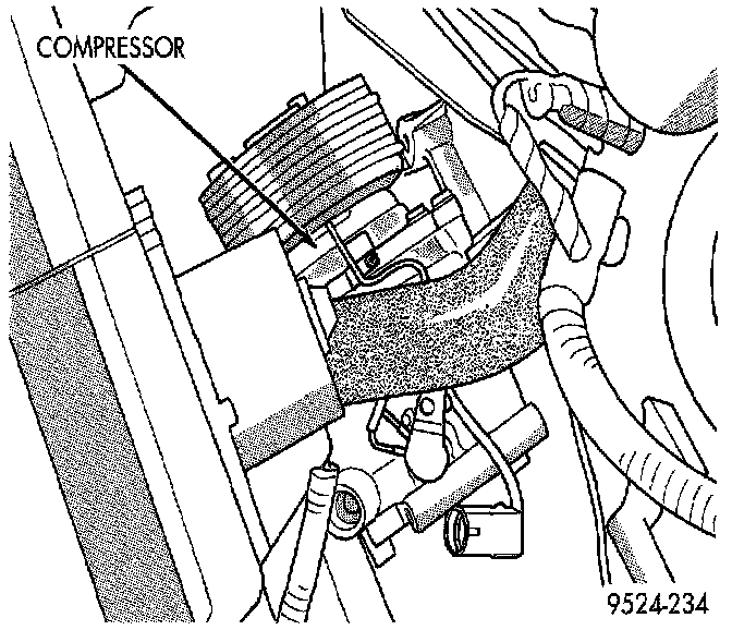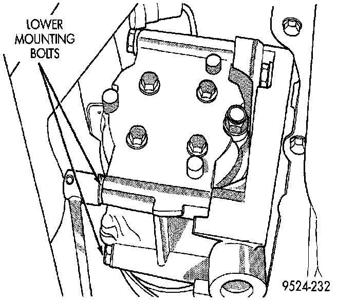2. Install the compressor attaching bolts. Tighten bolts to 41 N.m (30 ft. lbs.) torque.