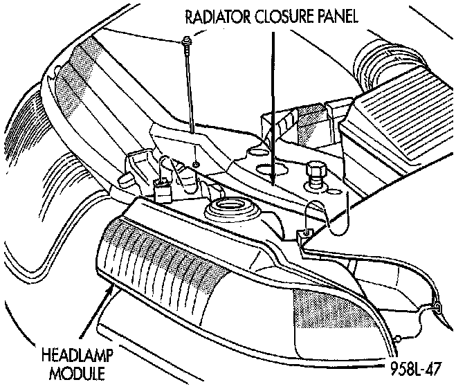 2. Remove screws holding headlamp module to radiator closure panel.