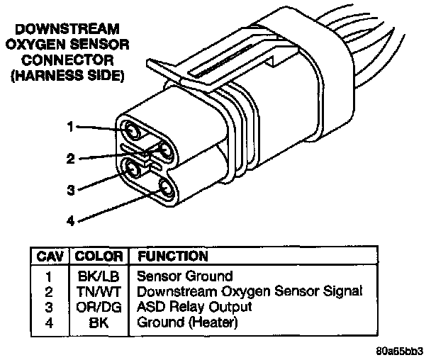 Downstream Oxygen Sensor Connector (Harness Side):