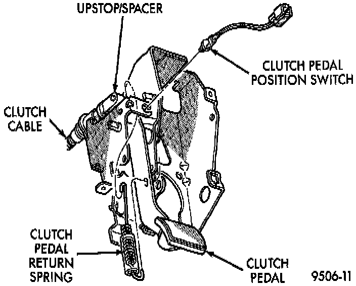 The clutch pedal position switch is mounted to a bracket located behind the clutch pedal. The switch is held in place by four plastic wing tabs.Clutch Pedal Position Switch And Components: