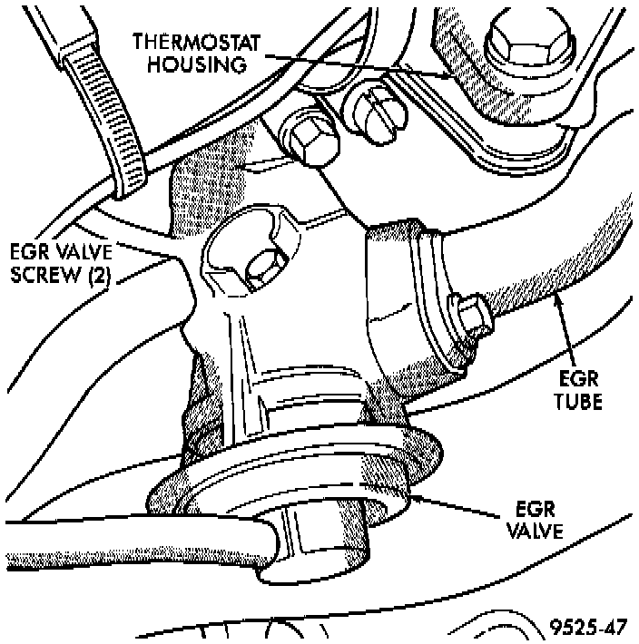 7. Remove EGR valve mounting screws. Remove EGR valve and transducer.