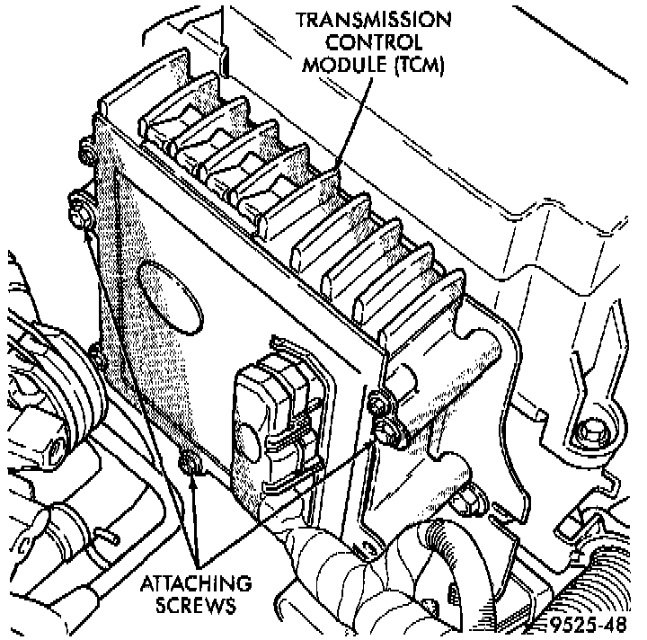 5. Remove screws holding Transmission Control Module (TCM) to bracket (Fig. 5). Swing TCM up to allow access to EGR screws (Fig. 6).
