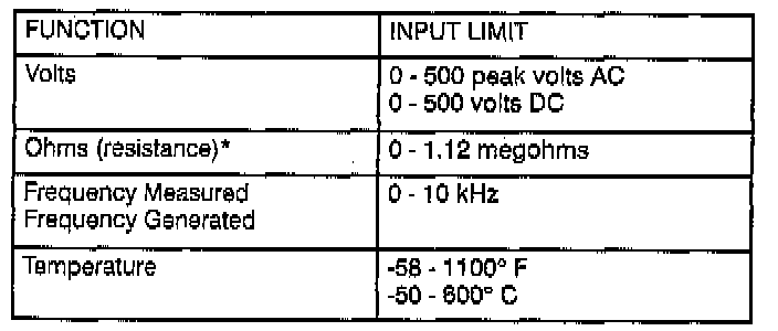 *Ohms cannot be measured if voltage is present. Ohms can be measured only in a non-powered circuit.