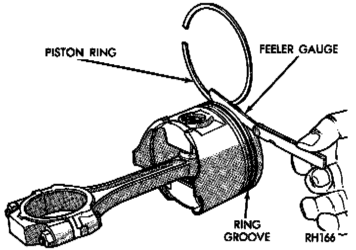 1. Wipe cylinder bore clean. Insert ring and push down with piston to ensure it is square in bore. The ring gap measurement must be made with the ring positioning at least 12 mm (0.50 inch) from bottom of cylinder bore. Check gap with feeler gauge.