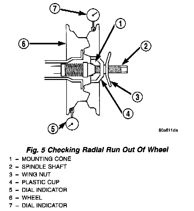 - Check the radial runout of the wheel. The radial runout of the wheel should be no more than 0.62 mm (0.024 inch).