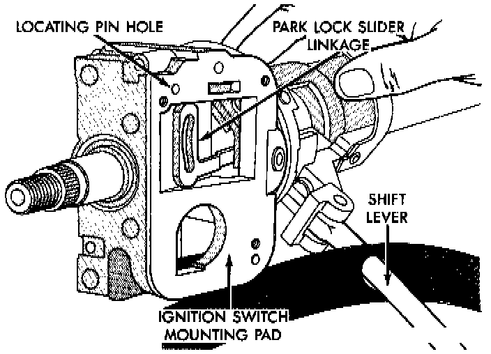 3. Place ignition switch against lock housing opening on steering column. Ensure that ignition switch park lock dowel pin enters slot in park lock slider linkage in steering column.