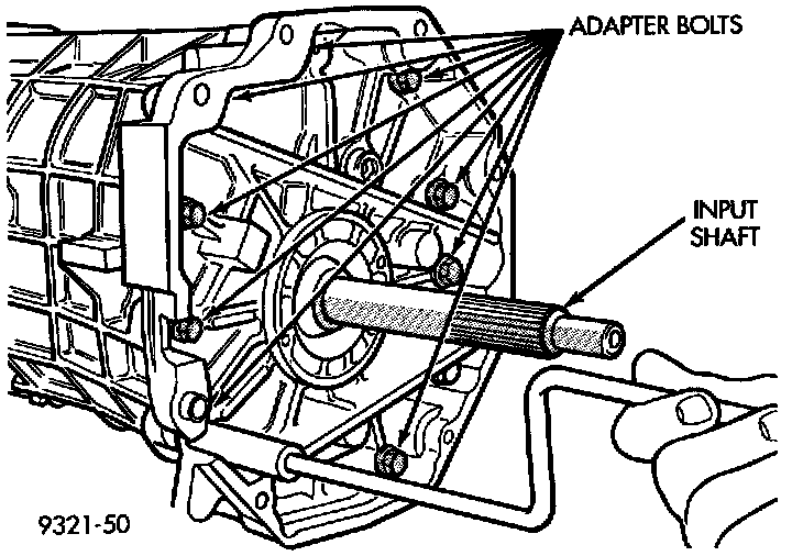 8. Hold input shaft while sliding front adapter off.