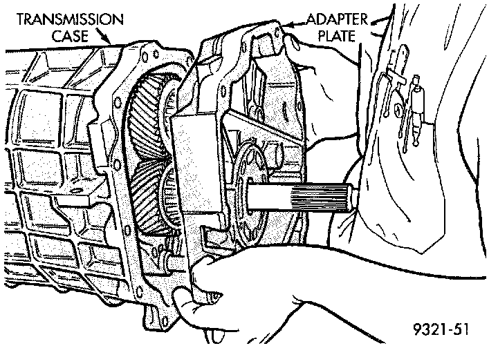 6. After the correct shim has been installed, remove the adapter plate and apply Mopar Gasket Maker to the sealing surfaces. Then reassemble the transmission.