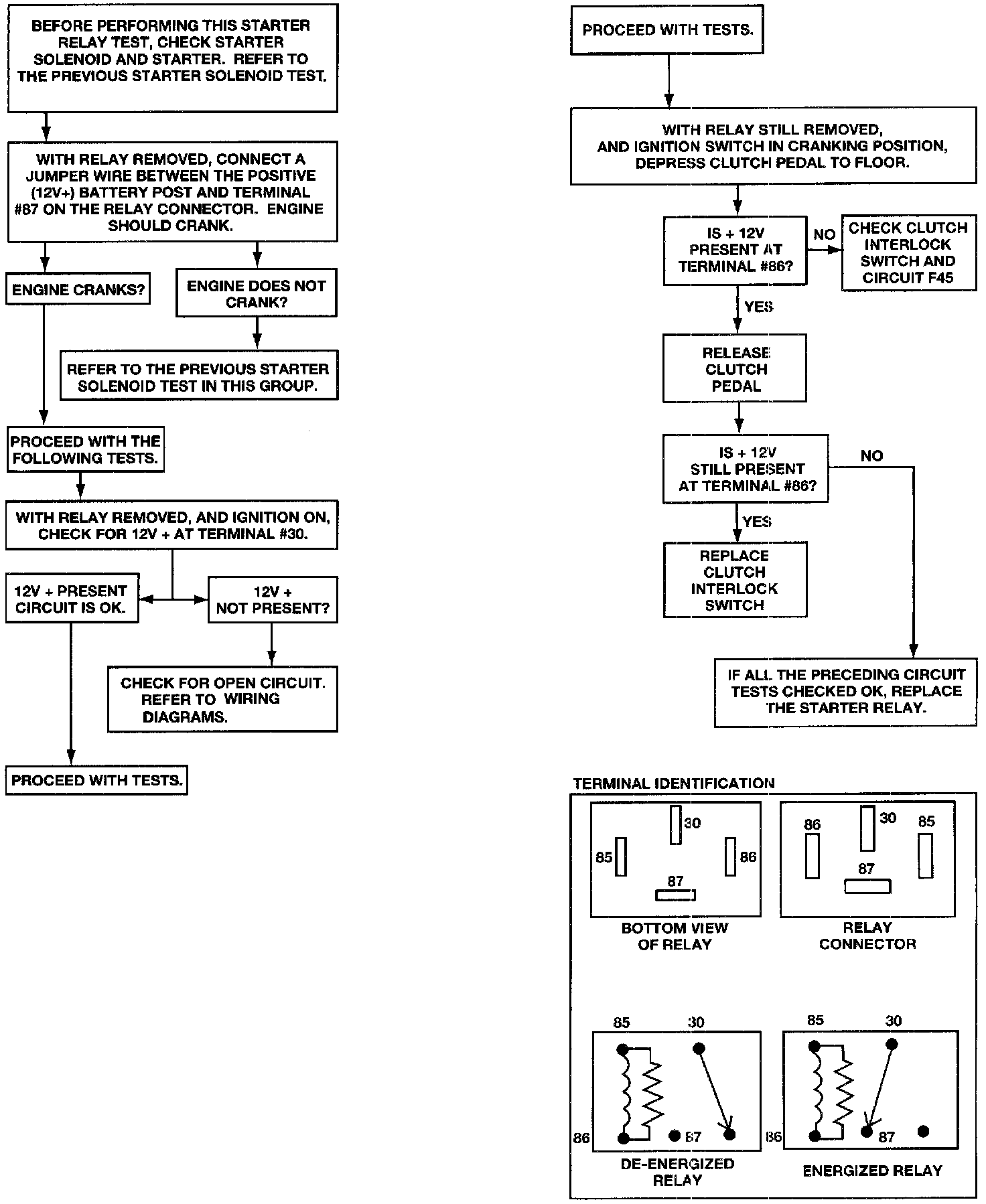 2. Perform the preceding starter and solenoid tests BEFORE performing starter relay tests. Refer to Starter and Solenoid Test.