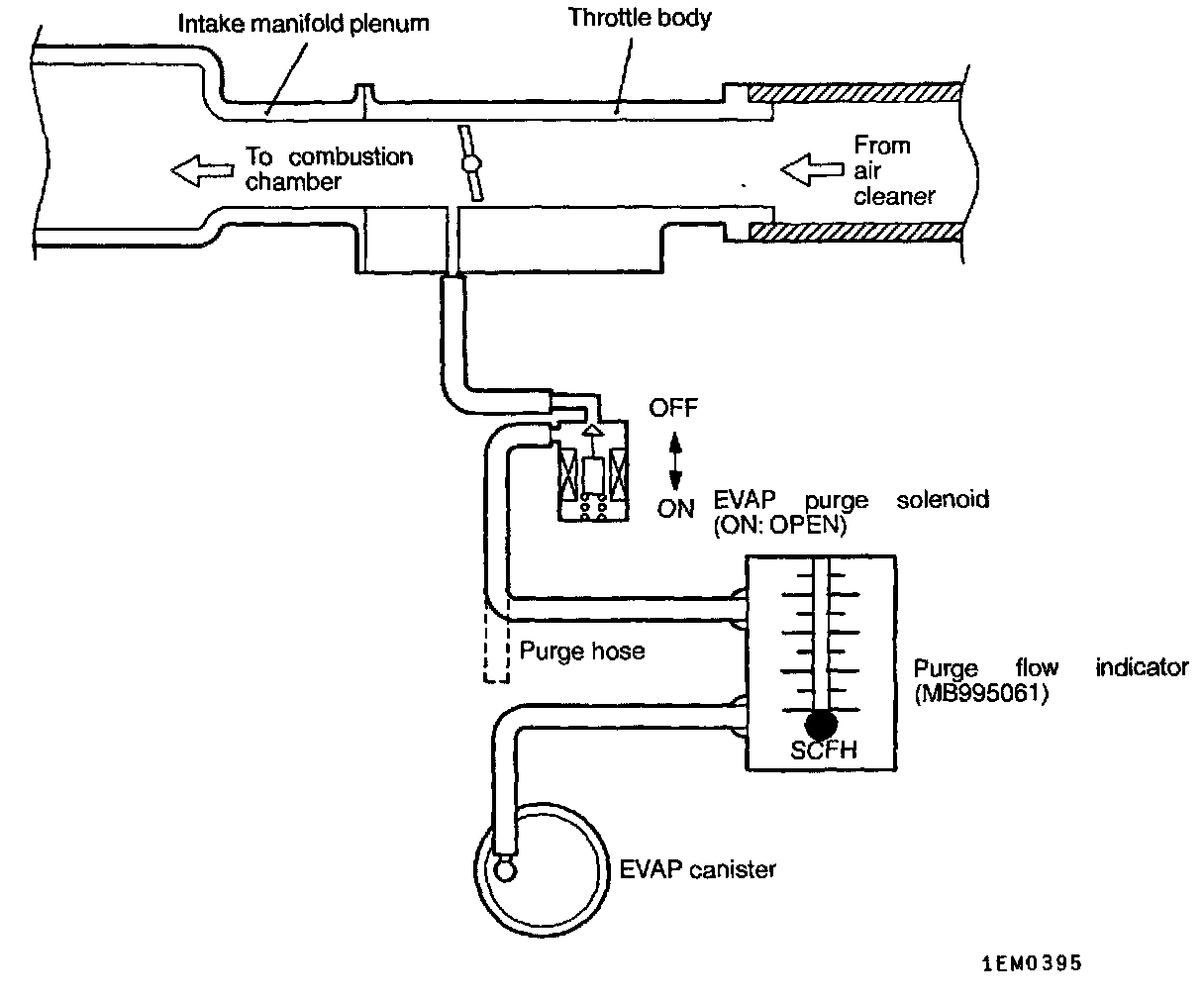 5. If the purge flow volume is less than standard value, check it again with the vacuum hose disconnected from the EVAP canister.