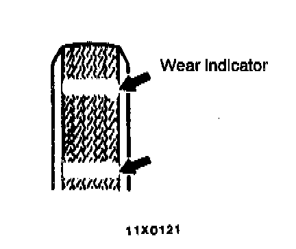 NOTE: When the tread depth of tires is reduced to 1.6 mm (0.06 inch) or less, wear indicators will appear.