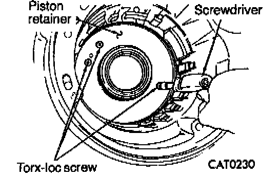 4. Install Torx-loc screws attaching low/reverse clutch piston retainer.