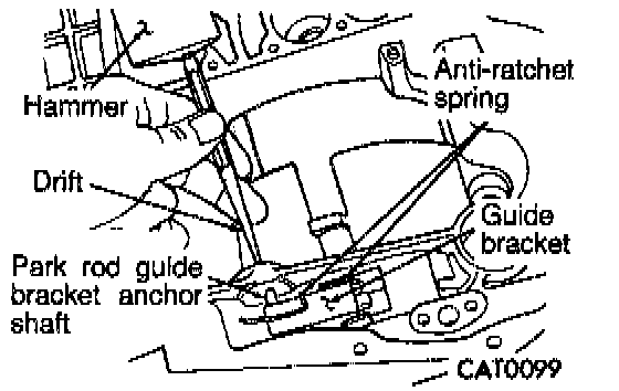 8. Install park rod guide bracket anchor shaft with a hammer and drift.