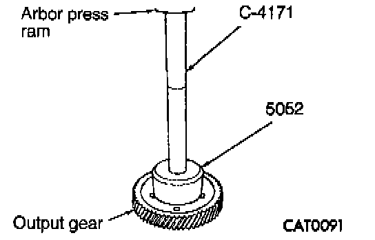 15. Install bearing, and press onto output gear using Drive Handle C-4171 and Bearing Installer 5052.