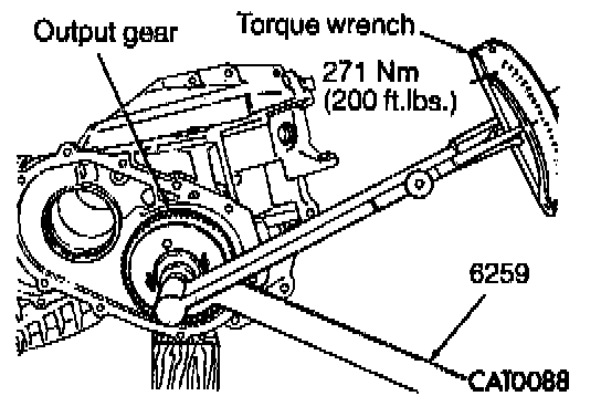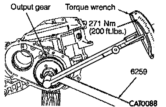 18. Tighten output gear bolt to 271 Nm (200 ft. lbs.. while holding output gear with Holder 6259.