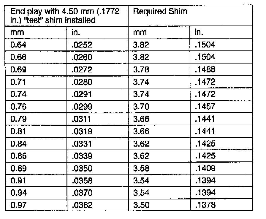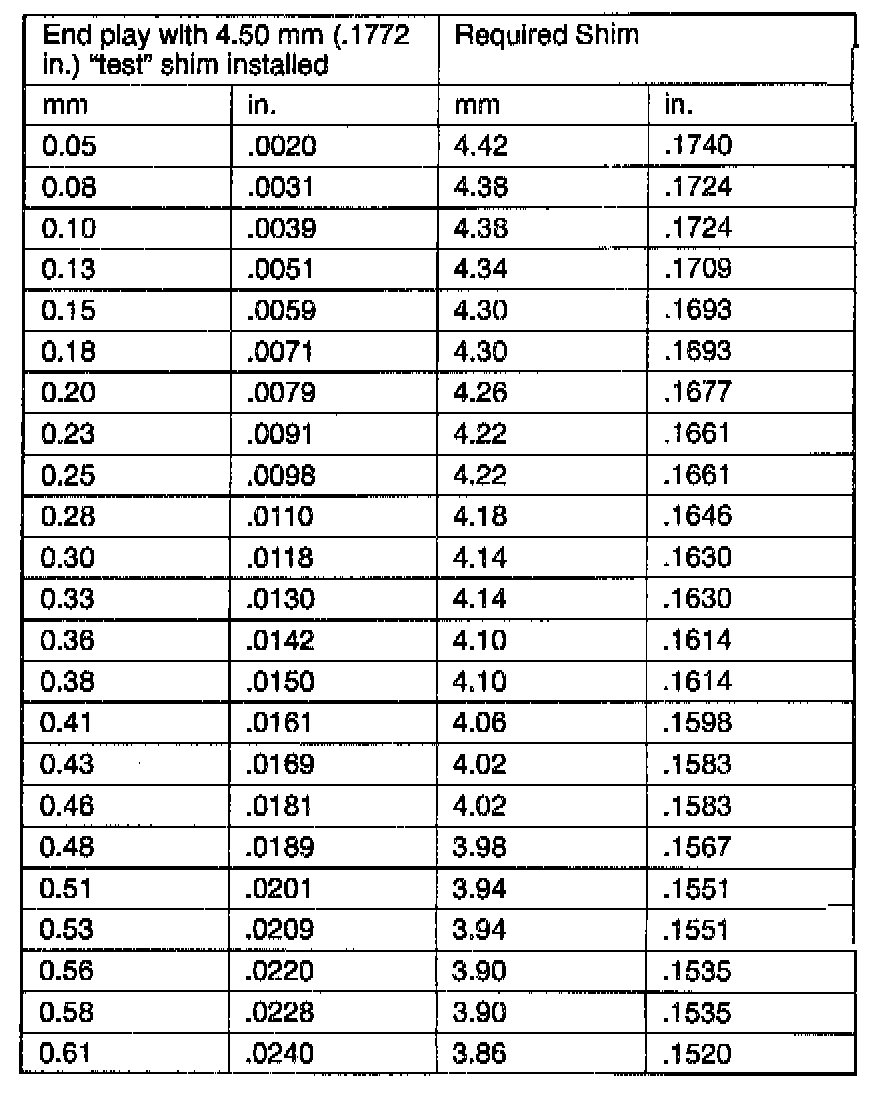 22. 0nce bearing end play has been determined, refer to the Output Gear Bearing Shim Chart for the required shim.