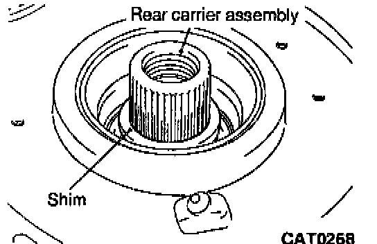 16. Install a 4.50 mm (0.1772 inch. "test" shim on the rear carrier assembly hub, using grease to hold the shim in place.