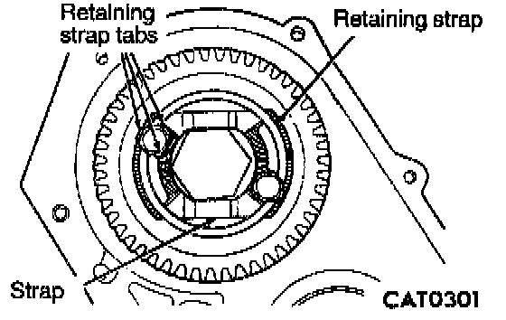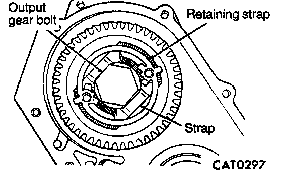 34. Align bolt holes of output gear with retaining strap holes, and install retaining strap.