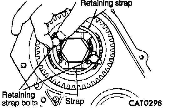 37. Tighten retaining strap bolts to specified torque.