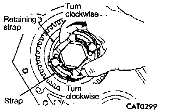 36. Turn strap clockwise until it contacts output gear bolt.