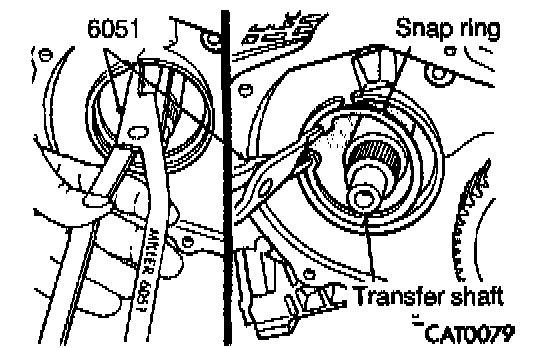 42. Install transfer shaft bearing snap ring with Snap Ring Pliers 6051.
