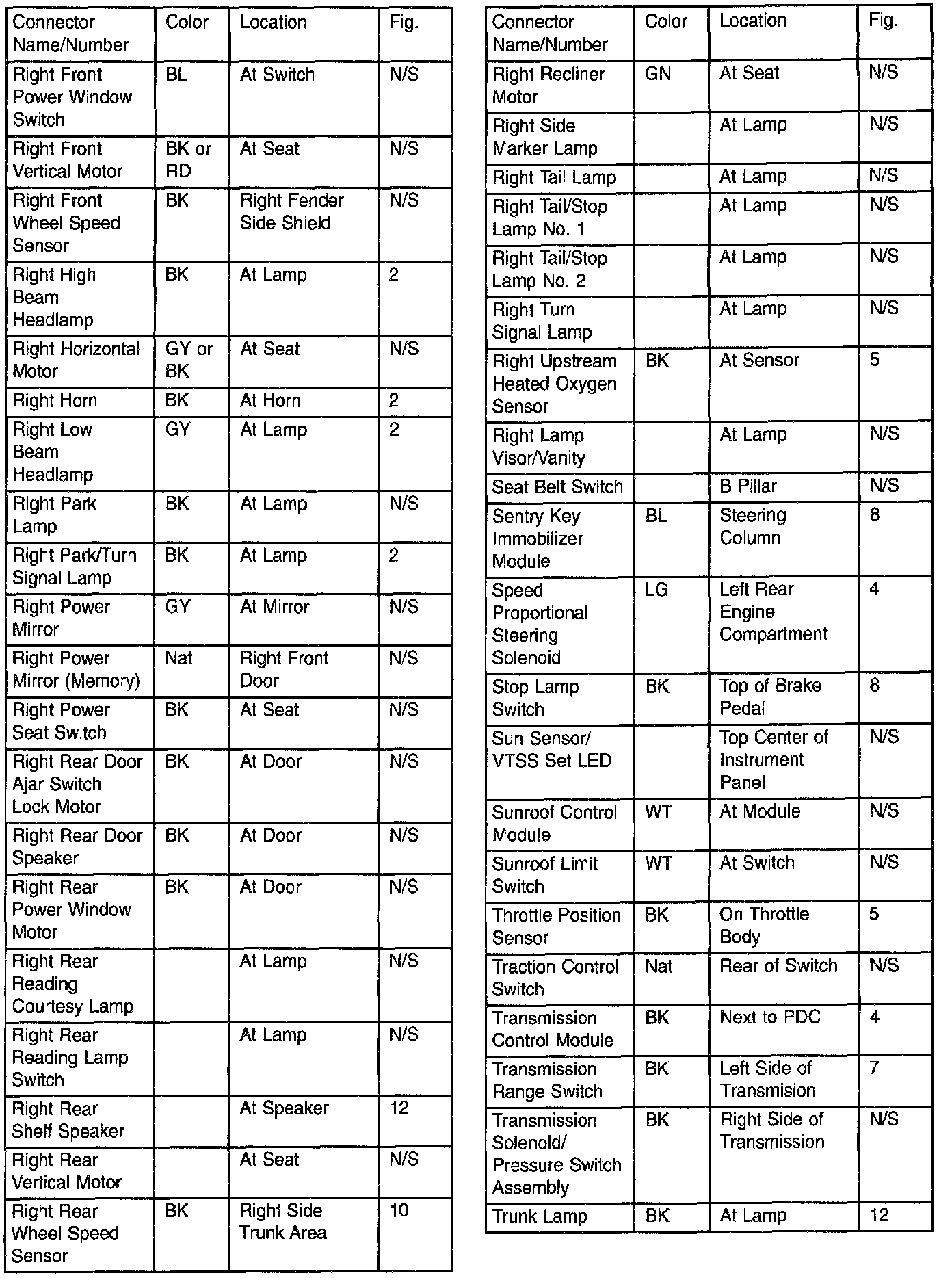 Connector & Ground Locations Index